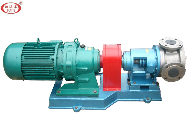 高粘度泵采用外部潤滑方式。軸承部分和泵腔工作部分由密封部分隔開,軸承部分可通過油杯從外部定期加油潤滑。泵體內設有加熱或冷卻夾套,可通過外部裝置實現加溫或降溫過程。該型泵可配閥,當泵或管路系統超壓時,閥打開,形成內部回流,保證系統。泵有泵體、泵蓋、閥部分、主動軸、內、外轉子、支座、軸承等部分組成。泵裝置由泵、電機和底座組成。泵和電機固定安裝在底座上,傳動方式有皮帶傳動和聯軸器直聯兩種方式。